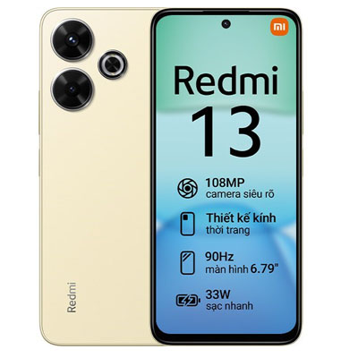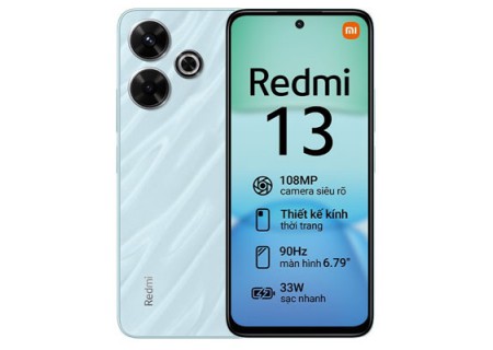 Xiaomi Redmi 13 6GB/128GB hứa hẹn sẽ là thiết bị smartphone giá rẻ gây bão tiếp theo của nhà Xiaomi với thiết kế mặt lưng kính cao cấp cùng bộ thông số ấn tượng như camera 108 MP, viên pin 5030 mAh, tần số quét 90 Hz, hiệu năng mạnh mẽ,... mang đến khả năng sử dụng hiệu quả cho người dùng với mức giá hợp lý.